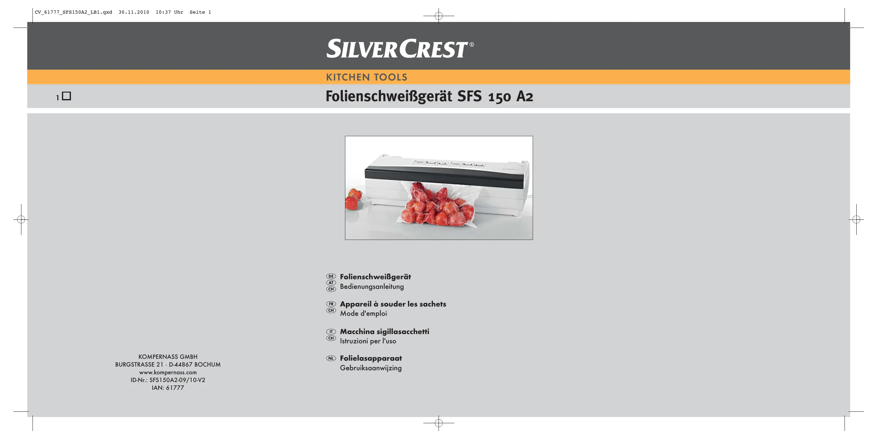 BEDIENUNGSANLEITUNG SFS 150 A2 VACUUM SEALER SILVERCREST