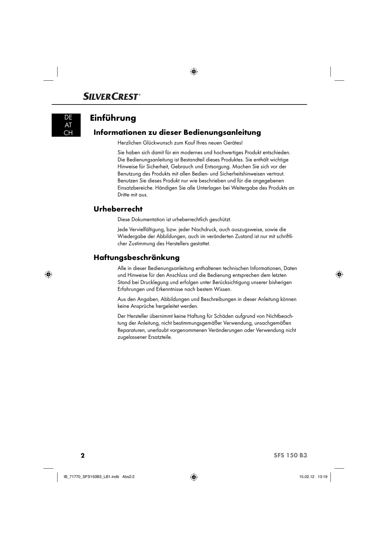 Laden Sie die Anleitung für Ihr Undefiniert kostenlos im PDF-Format! Finden Sie Ihr Handbuch SFS 150 B3 - SILVERCREST und nehmen Sie Ihr elektronisches Gerät wieder in die Hand. Auf dieser Seite sind alle Dokumente veröffentlicht, die für die Verwendung Ihres Geräts notwendig sind. SFS 150 B3 von der Marke SILVERCREST.