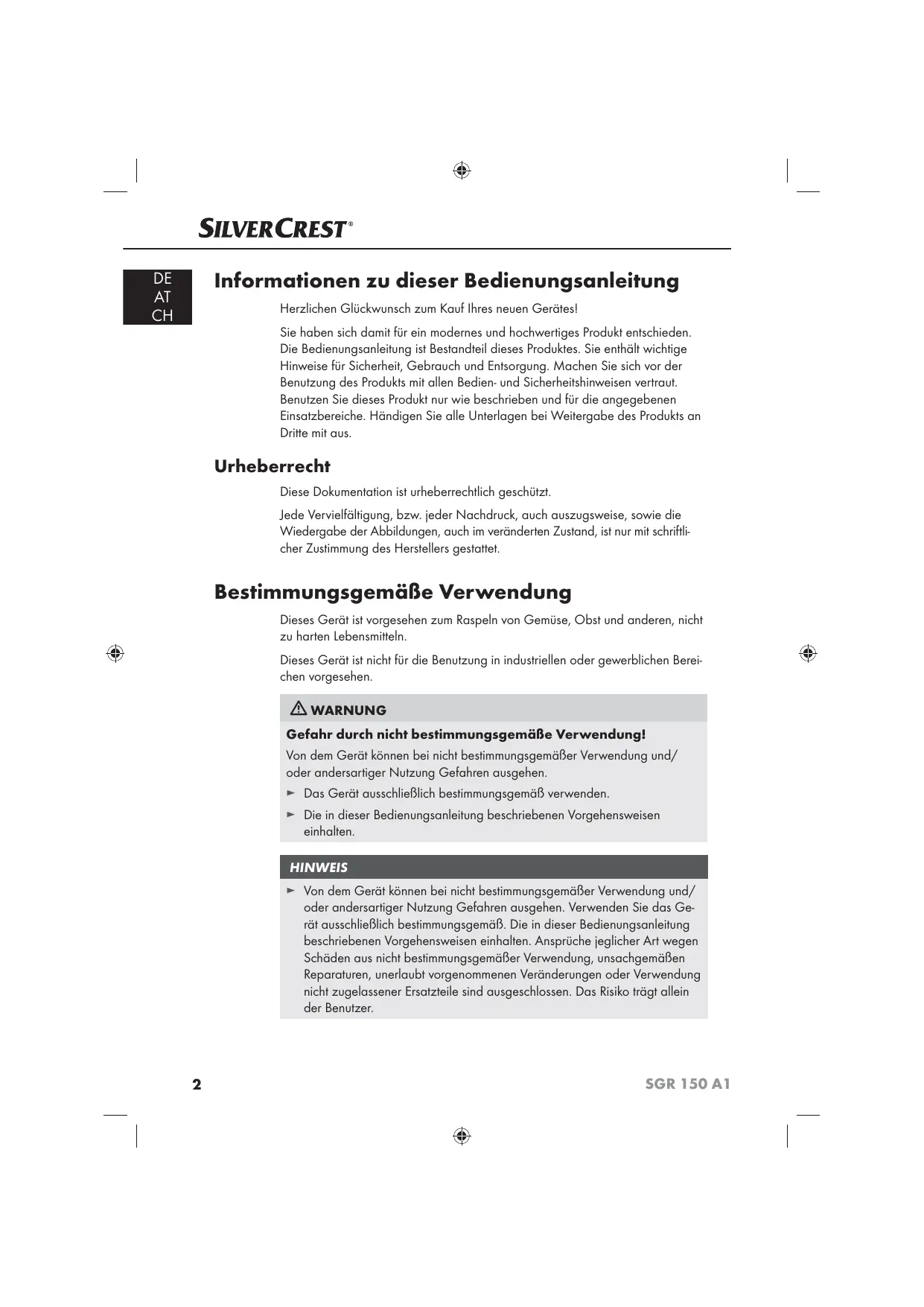 SGR 150 A1 - SILVERCREST - Kostenlose Bedienungsanleitung