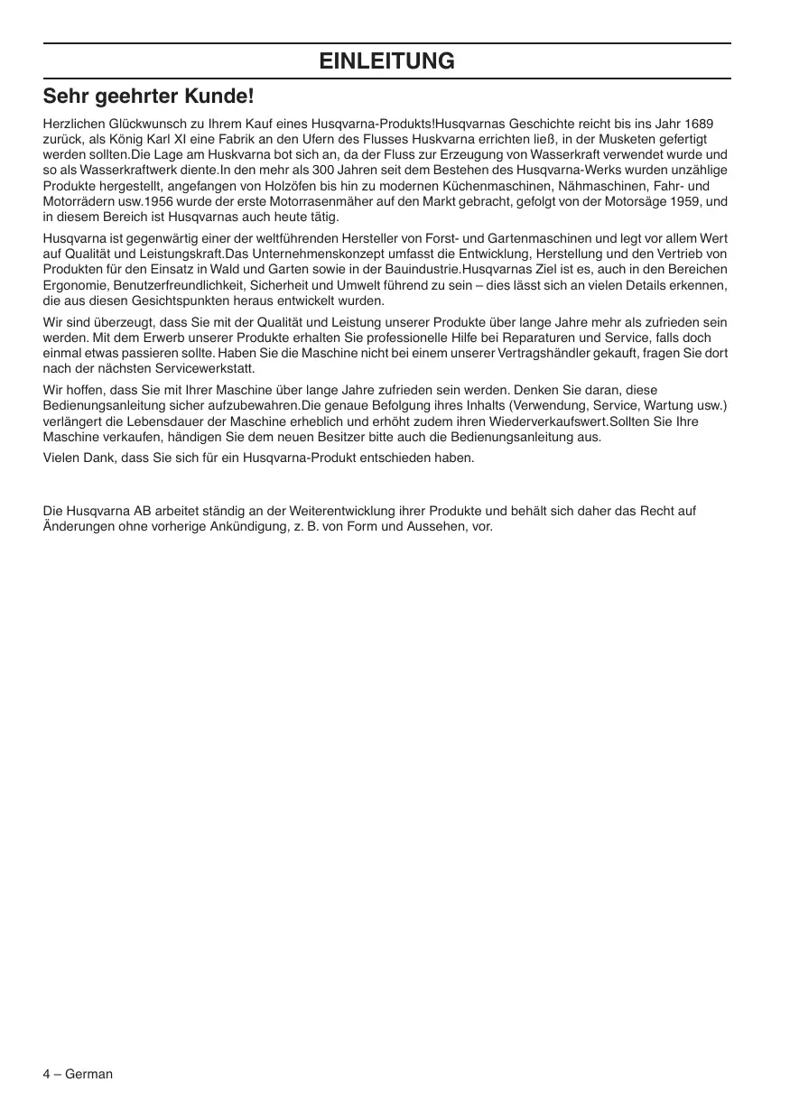 Husqvarna AB travaille continuellement au développement de ses produits et se réserve le droit d’en modifier, entre autres, la conception et l’aspect sans préavis.
