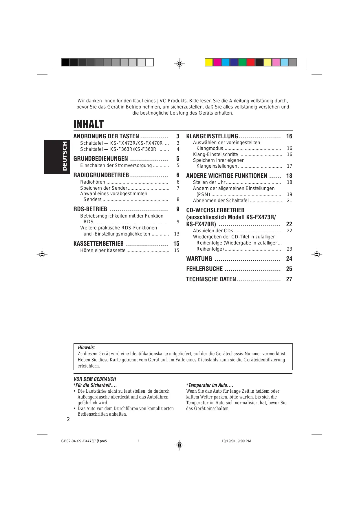 BEDIENUNGSANLEITUNG KS-FX473R JVC