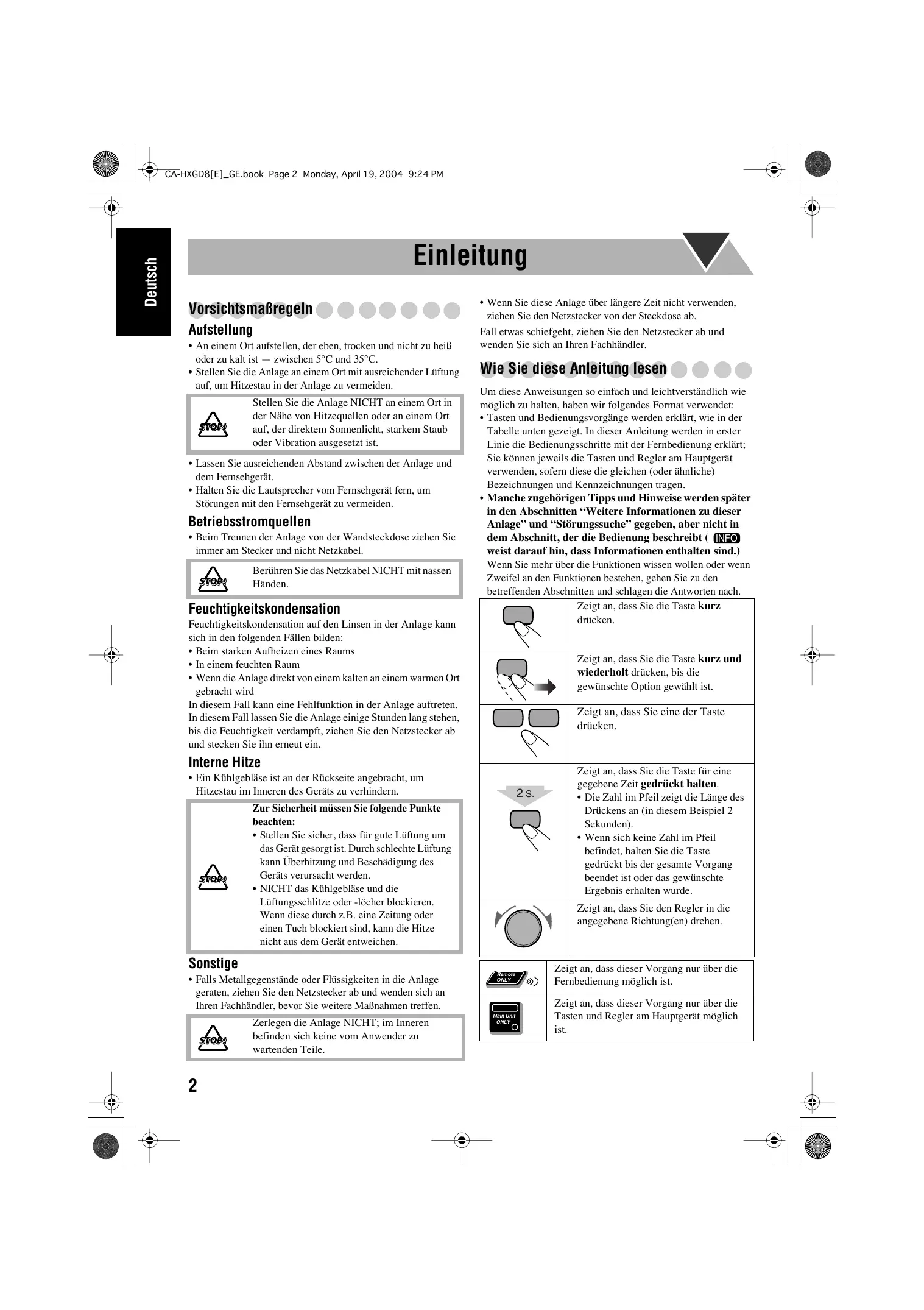 CA-HXGD8[E]_GE.book Page 1 Monday, April 19, 2004 9:24 PM Deutsch