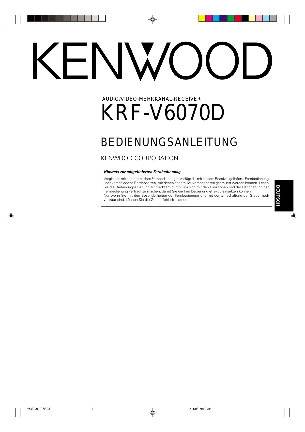 KRF-V6070D - Audio-/Video-Empfänger KENWOOD - Kostenlose Bedienungsanleitung