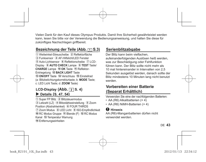 Finden Sie kostenlos die Bedienungsanleitung des Geräts FL-600R OLYMPUS als PDF.