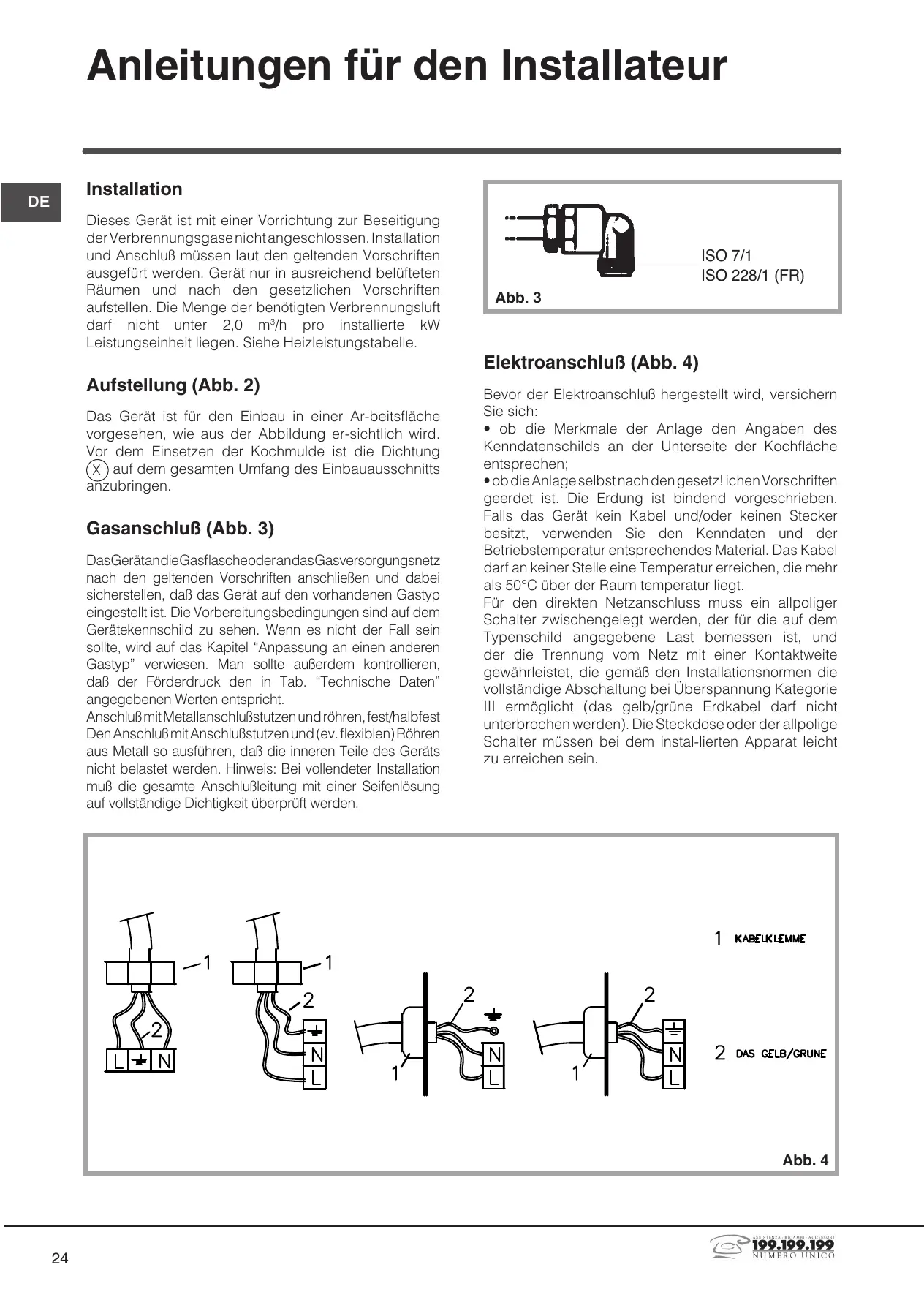 Para la conexión directa a la red es necesario interponer un interruptor omnipolar dimensionado para la carga de placa que asegure la desconexión de la red con una distancia de apertura de losc ontactos que permita la desconexión completa en las condiciones de la categoría de sobretensión III, de conformidad con las reglas de instalación (el cable de tierra amarillo/verde no debe estar interrumpido). El enchufe o el interruptor omnipolar tienen que ser fácilmente alcanzables con el aparato instalado.