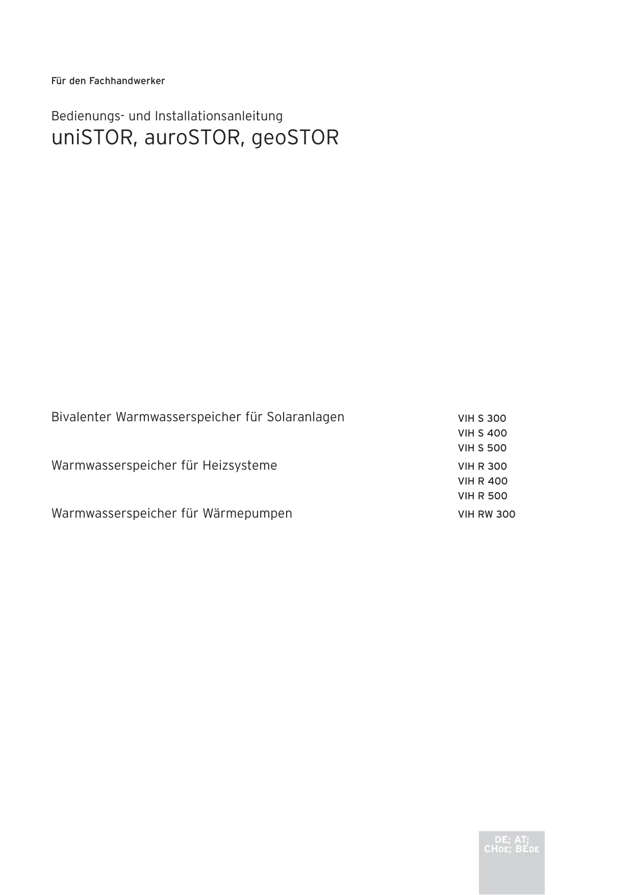 Bedienungs- und Installationsanleitung Speicher uniSTOR, auroSTOR, geoSTOR DE; AT; CHDE; BEDE