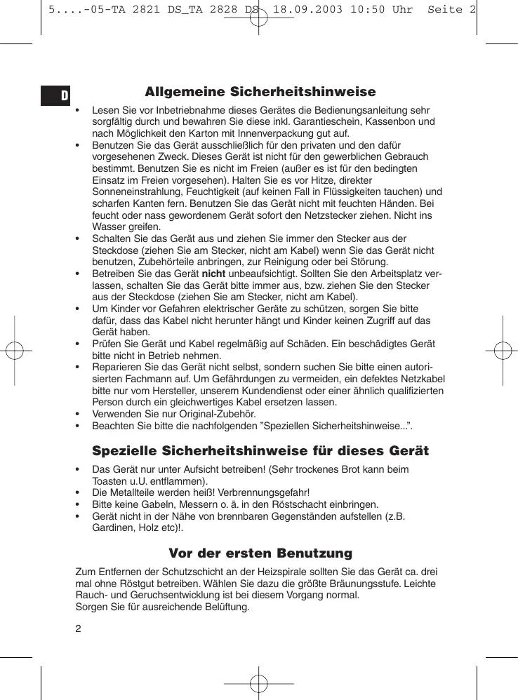 TA 2821 DS - CLATRONIC - Kostenlose Bedienungsanleitung