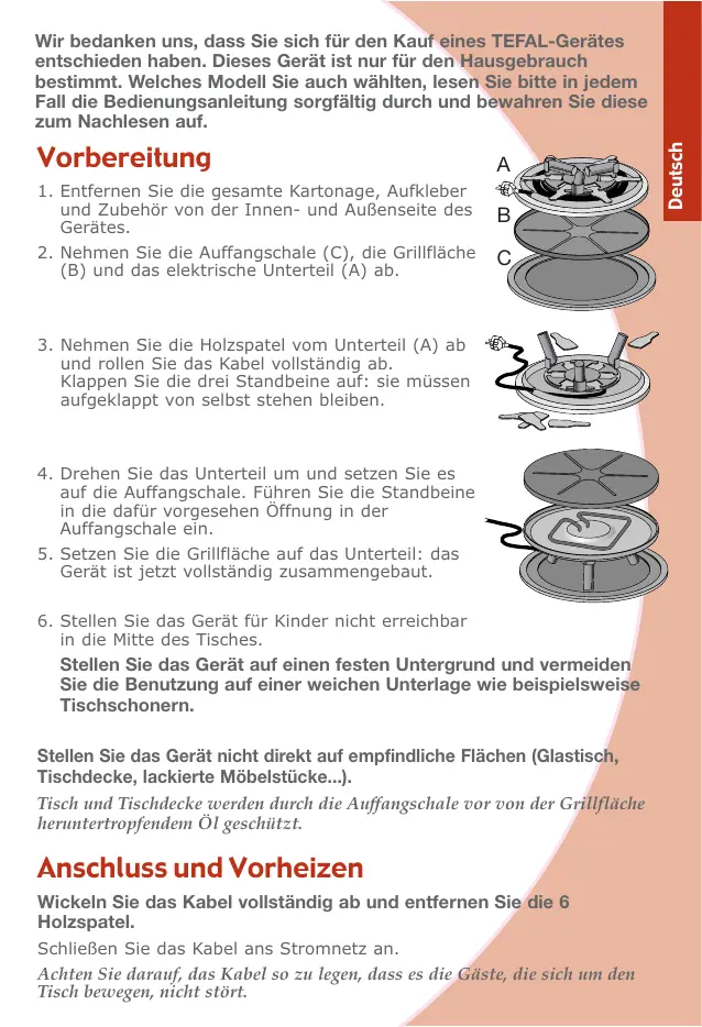 BEDIENUNGSANLEITUNG RACLETTE TEFAL