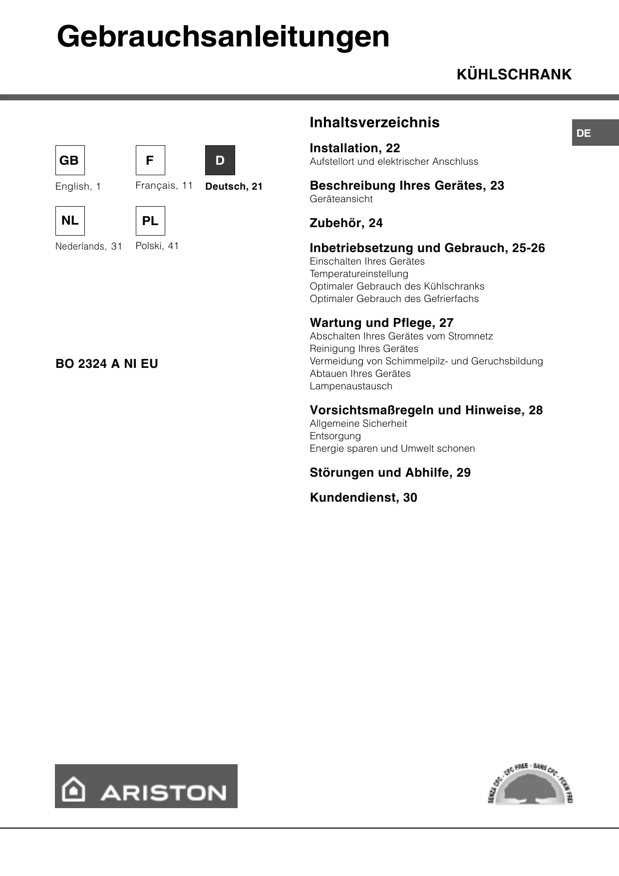 BEDIENUNGSANLEITUNG BO 2324 A N I EU HOTPOINT