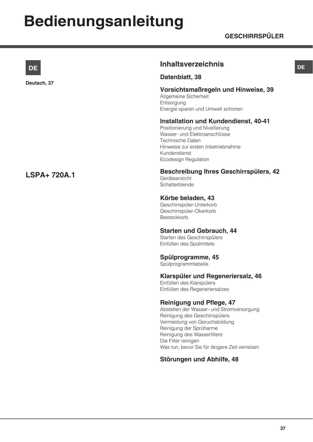 LSPA 720A.1 X/HA - Geschirrspüler HOTPOINT - Kostenlose Bedienungsanleitung