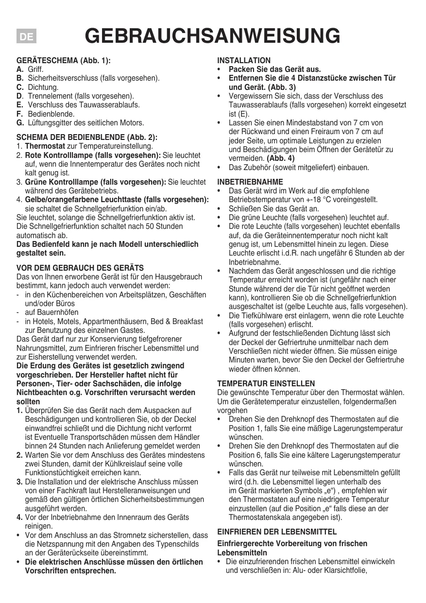 - Dieses Gerät ist für die Aufbewährung von Lebensmitteln bestimmt und entspricht der Verordnung (EG) Nr. 1935/2004