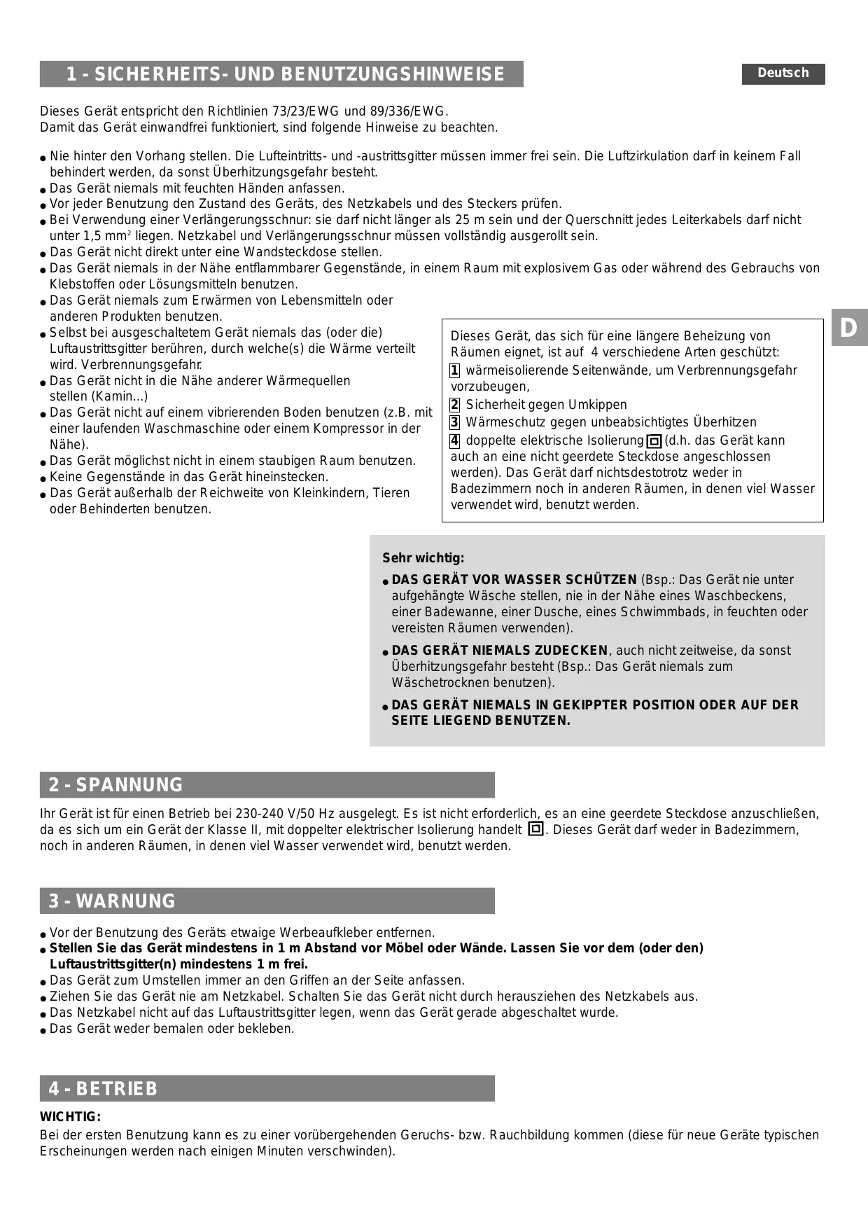 1 - SICHERHEITS- UND BENUTZUNGSHINWEISE Deutsch