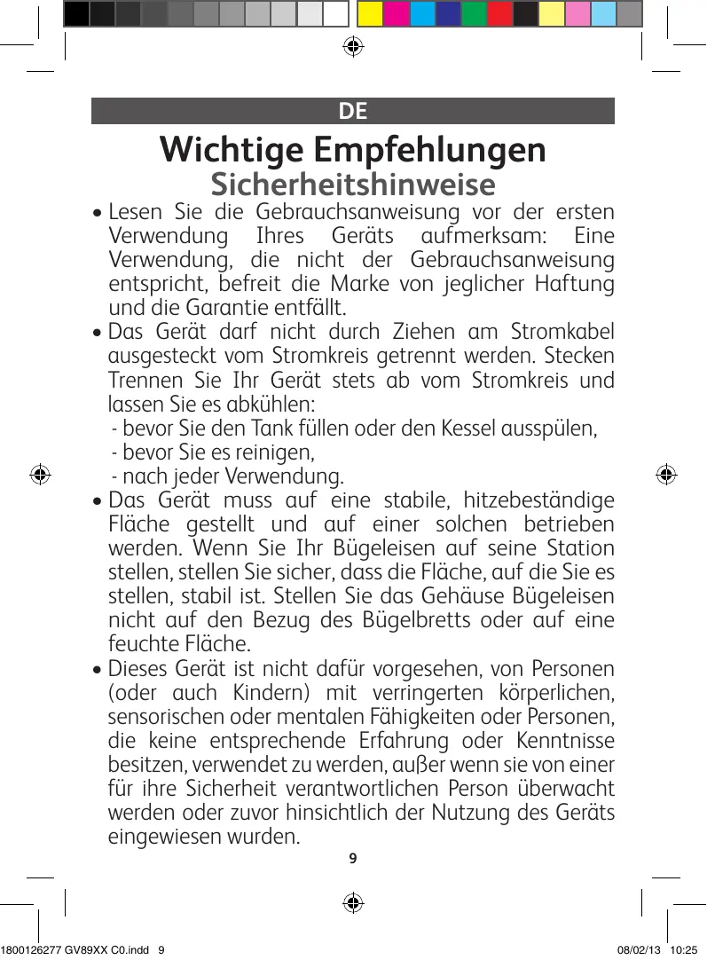 GV8960 CO - Dampfbügeleisen CALOR - Kostenlose Bedienungsanleitung