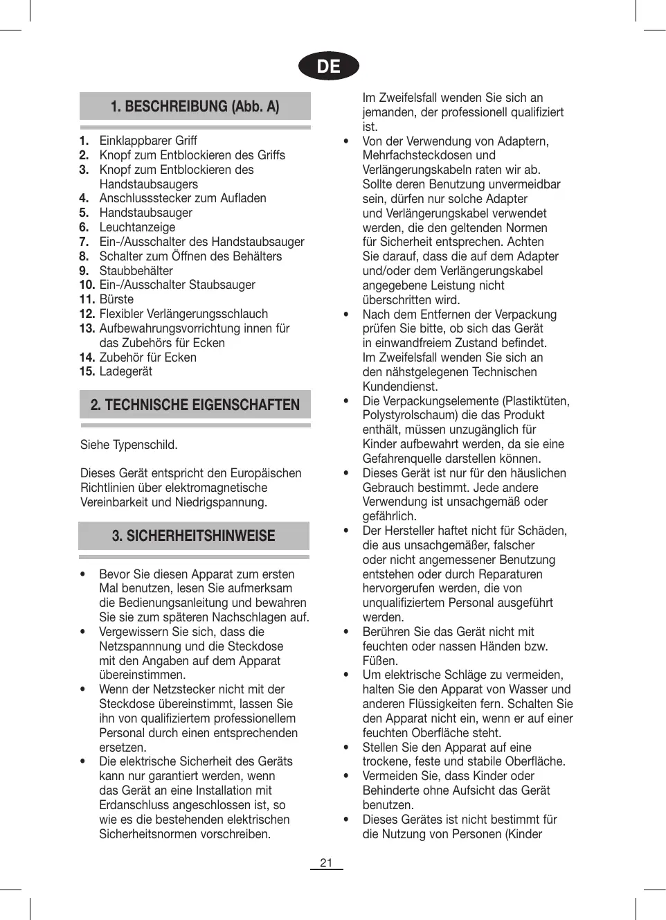 1. BESCHREIBUNG (Abb. A)