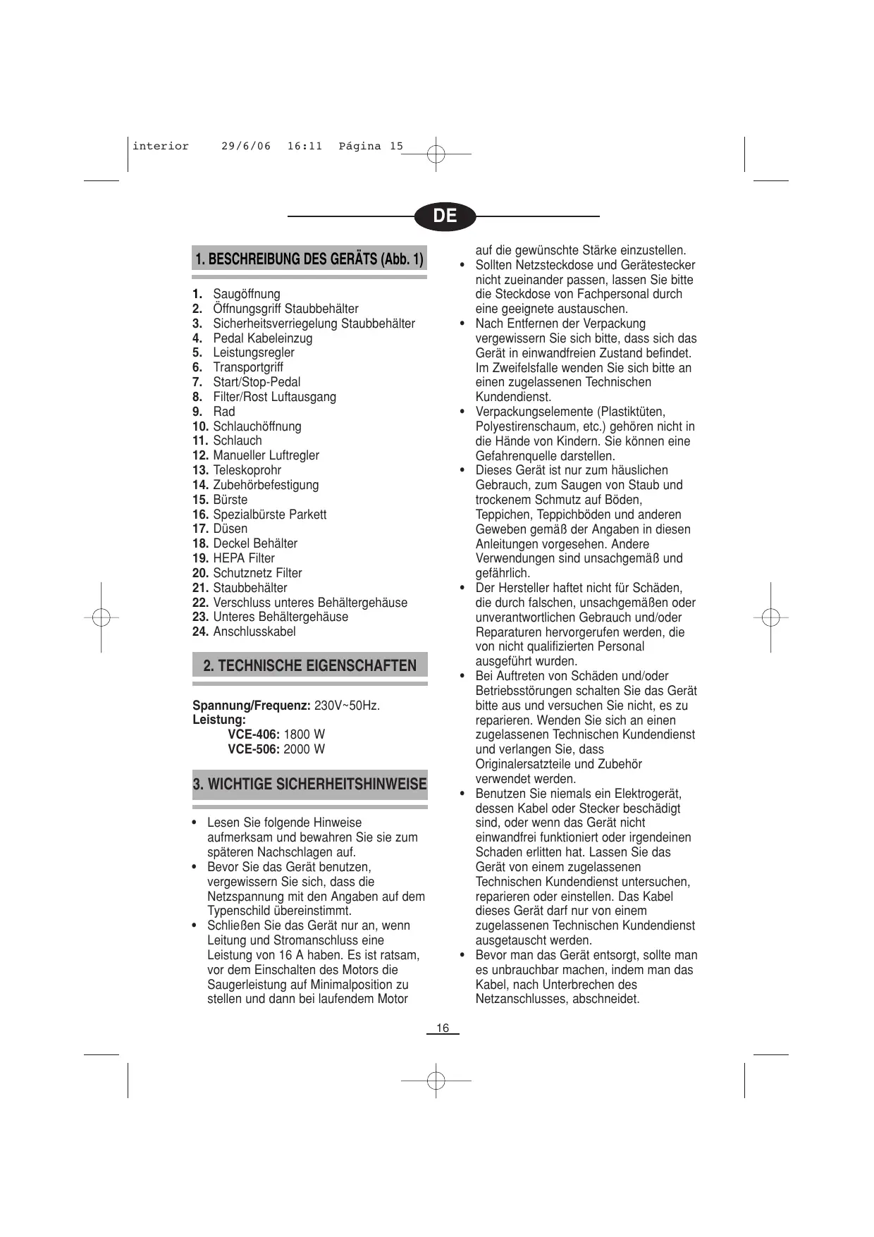 interior 29/6/06 16:11 Página 16 Bei der Benutzung elektrischer Geräte sind prinzipiell gewisse Grundregeln zu beachten.