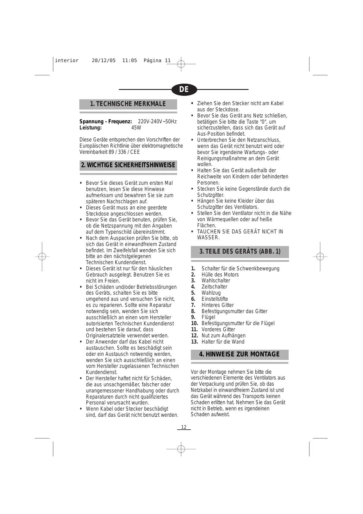 interior 28/12/05 11:05 Pégina 13 4 +_Wenn Sie den Ventilator zur Reinigung abnehmen wollen, folgen Sie der Montageanweisung in umgekehrter Reihenfolge.