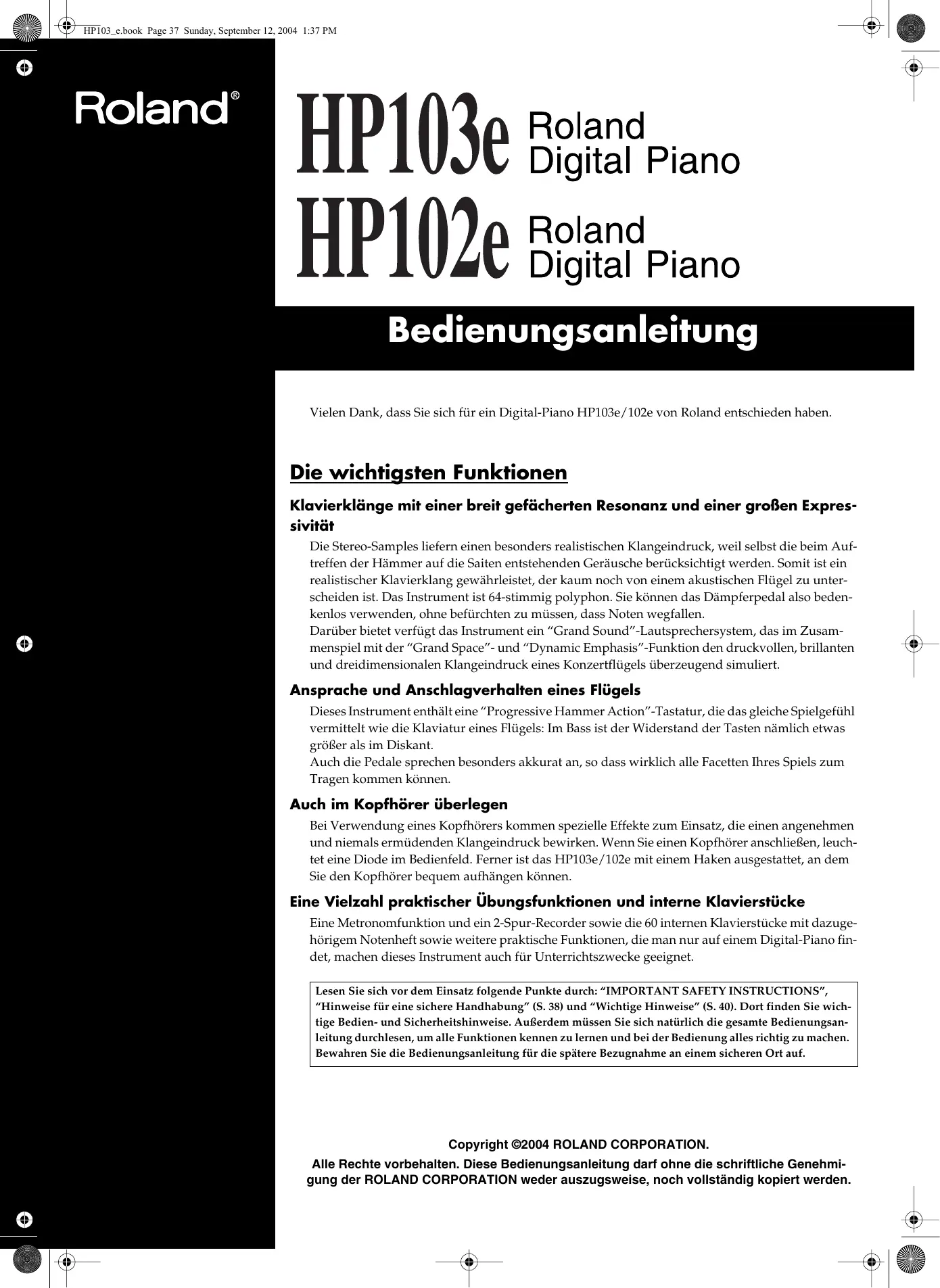 BEDIENUNGSANLEITUNG HP-102E ROLAND
