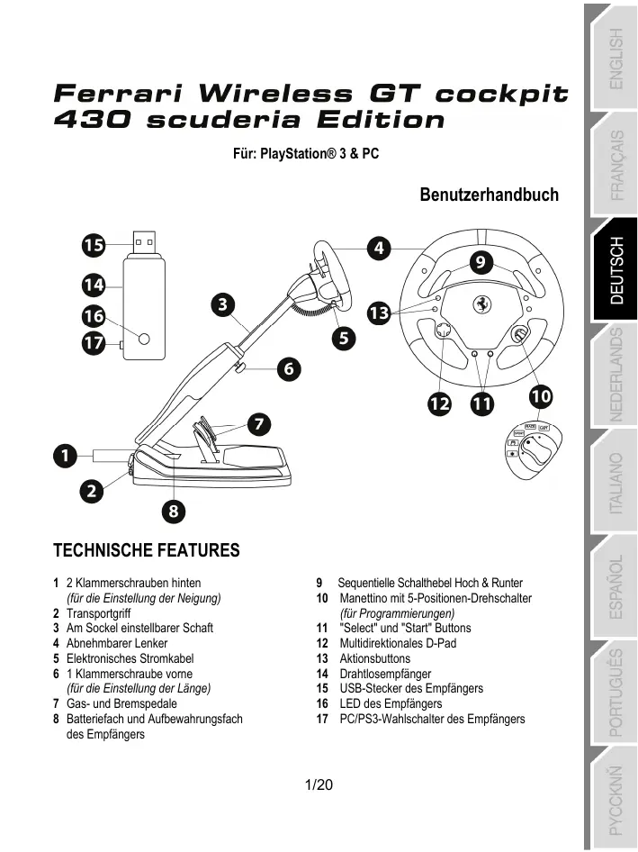FERRARI WIRELESS F430 COCKPIT - Rennlenkrad THRUSTMASTER - Kostenlose Bedienungsanleitung