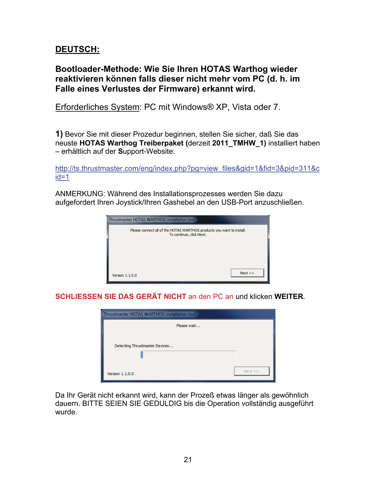 Finden Sie kostenlos die Bedienungsanleitung des Geräts HOTAS WARTHOG THRUSTMASTER als PDF.