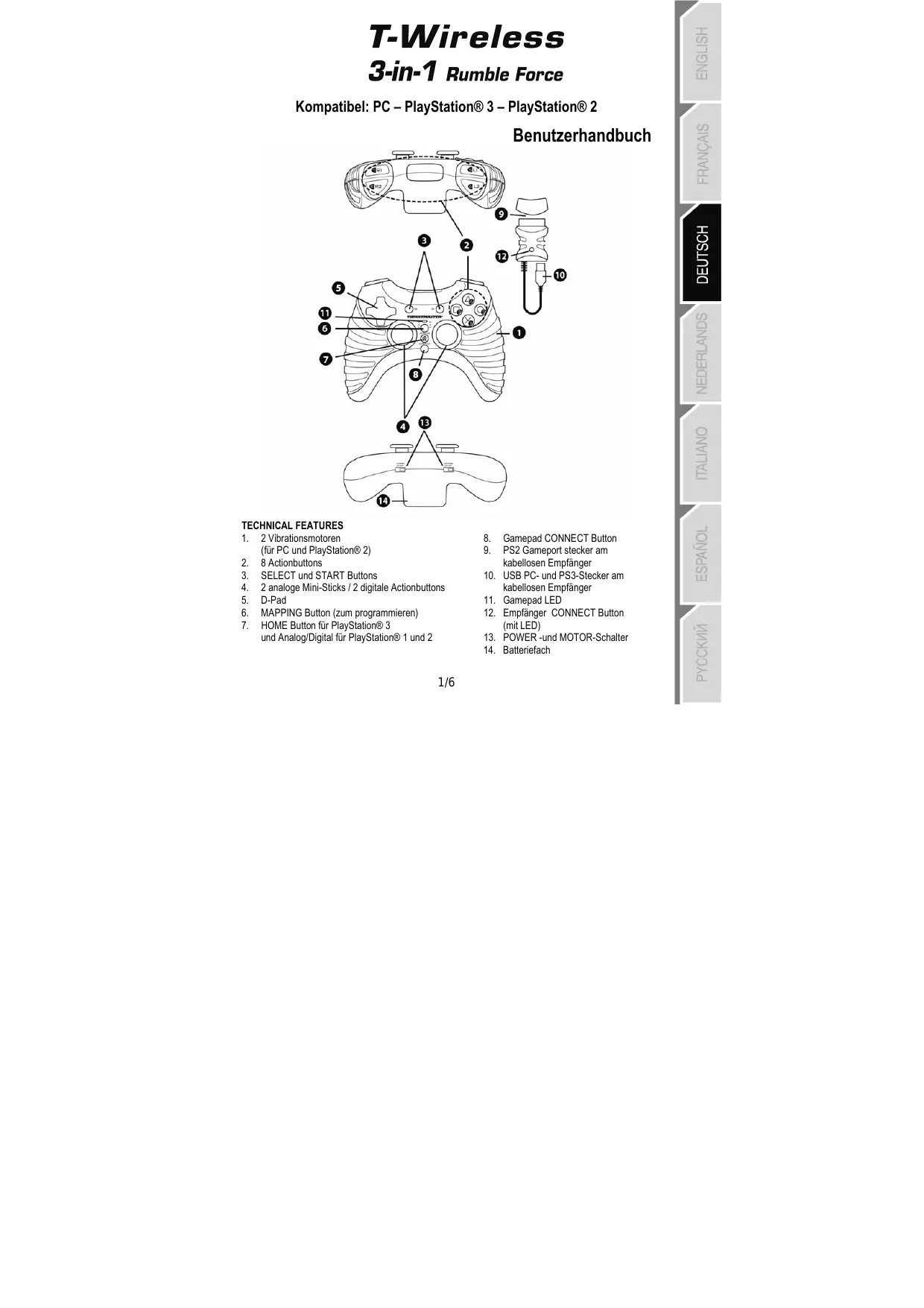 Finden Sie kostenlos die Bedienungsanleitung des Geräts T-WIRELESS 3 IN 1 RUMBLE FORCE THRUSTMASTER als PDF.