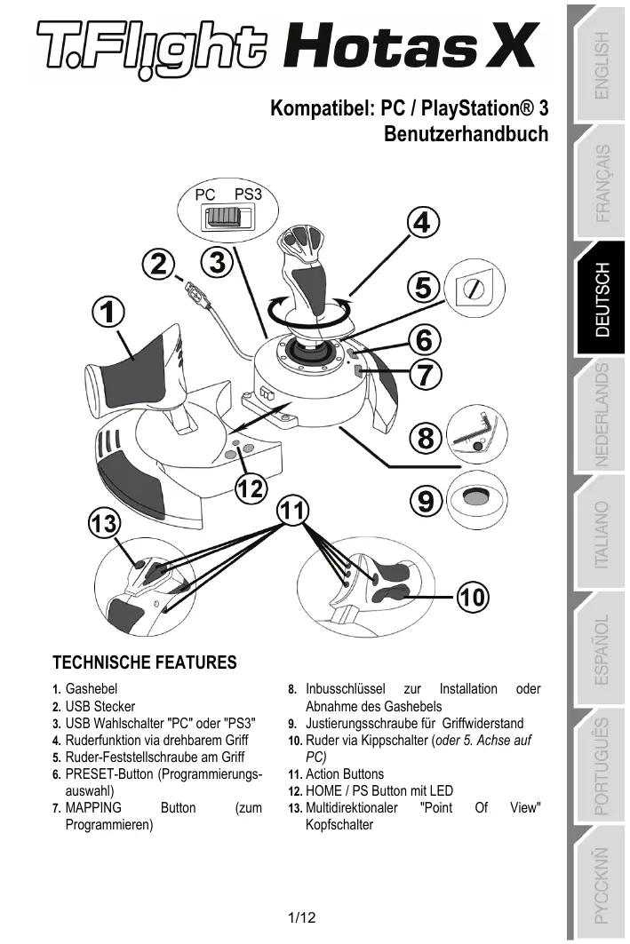 BEDIENUNGSANLEITUNG T.FLIGHT HOTAS X THRUSTMASTER