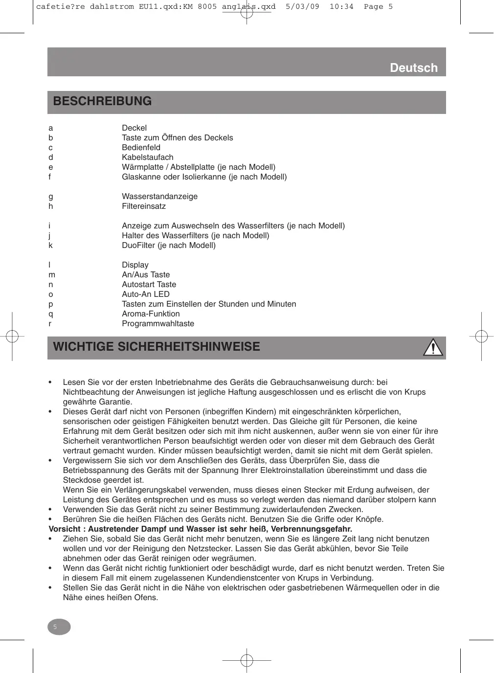 KM5055 - Kaffeemaschine KRUPS - Kostenlose Bedienungsanleitung