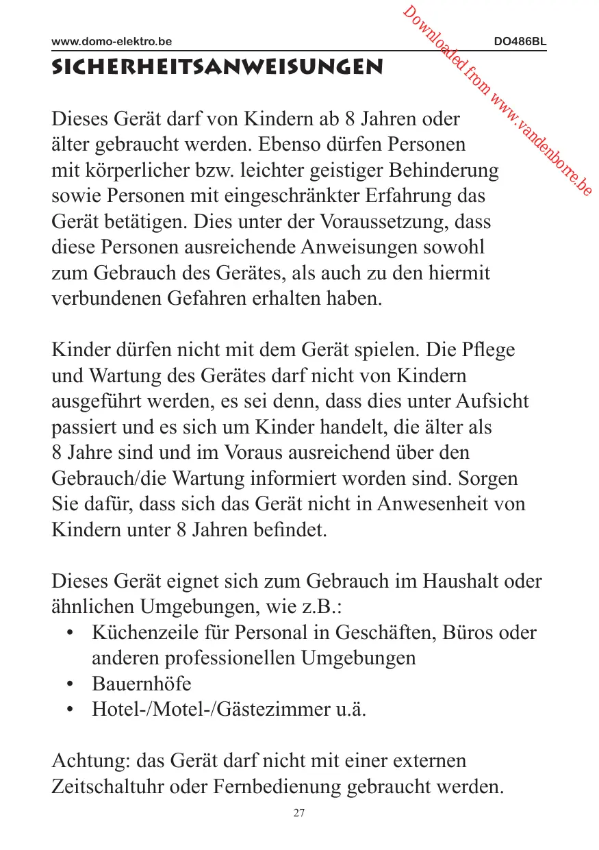 BEDIENUNGSANLEITUNG DO486BL DOMO