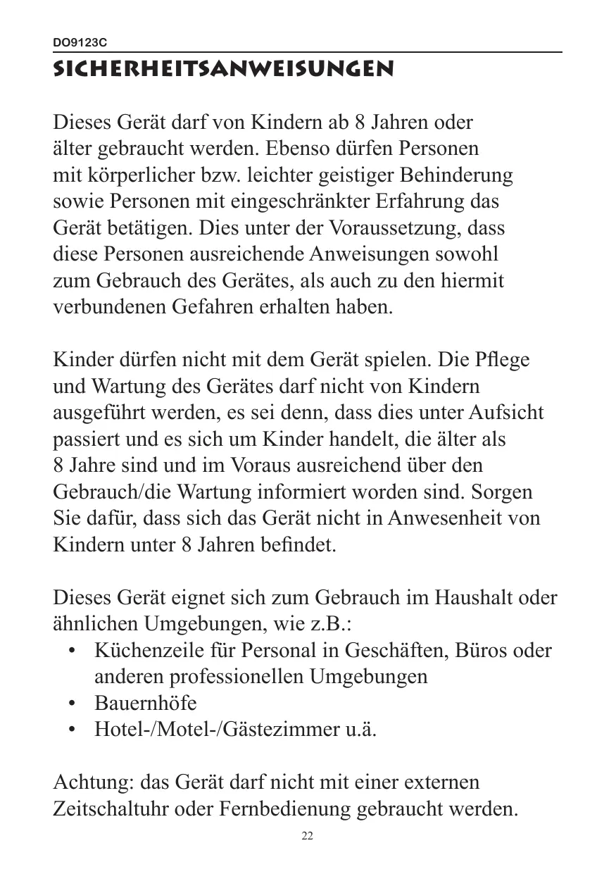 BEDIENUNGSANLEITUNG DO9123C DOMO