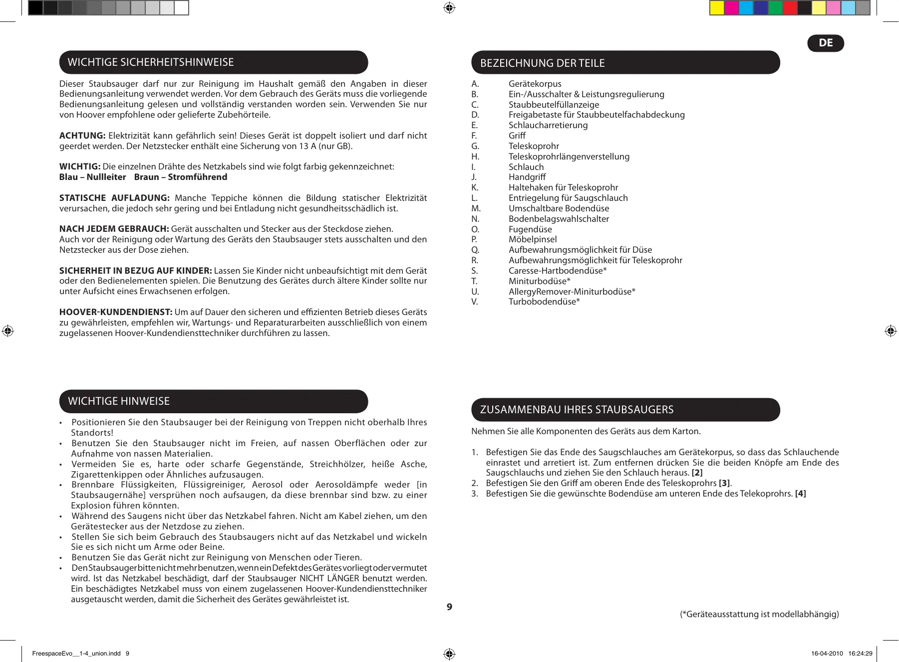 BEDIENUNGSANLEITUNG TFV2015, TFV2015 HOOVER