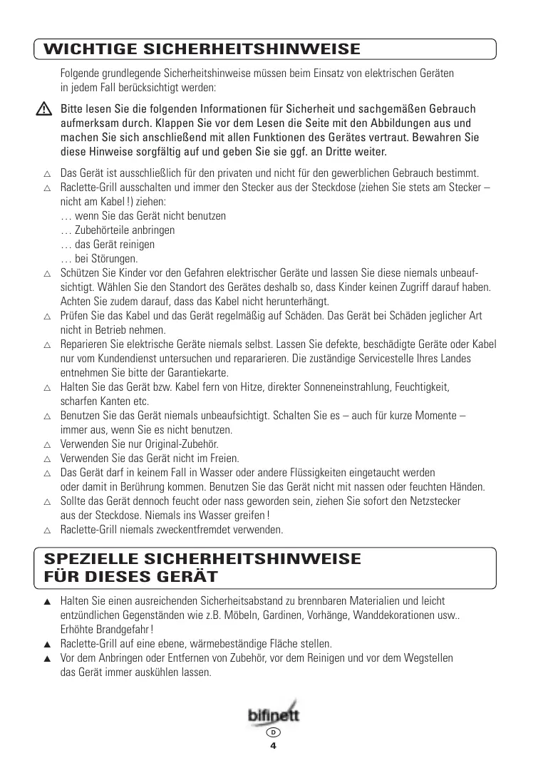 BEDIENUNGSANLEITUNG BIFINETT KH 398 RACLETTE-GRIL KOMPERNASS