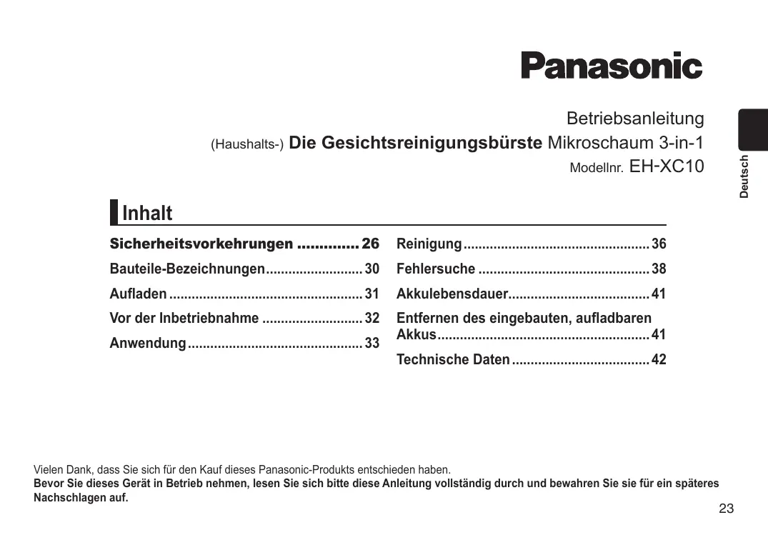 Finden Sie kostenlos die Bedienungsanleitung des Geräts EHXC10 PANASONIC als PDF.