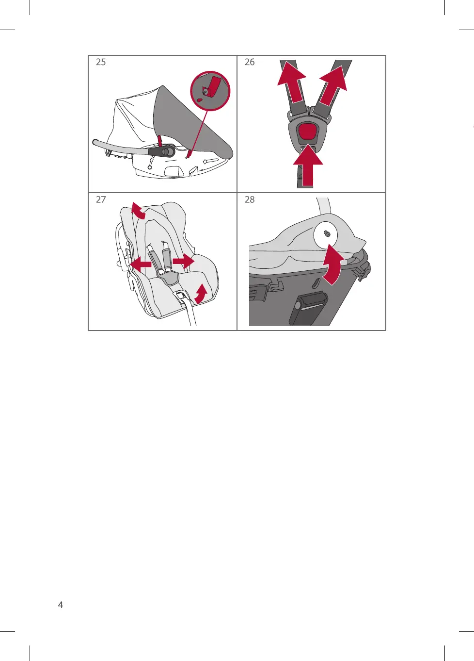 • Pour démonter la housse : ouvrir la boucle du harnais (fig. 26), faire passer les bretelles et le fermoir par les fentes de la housse (fig.