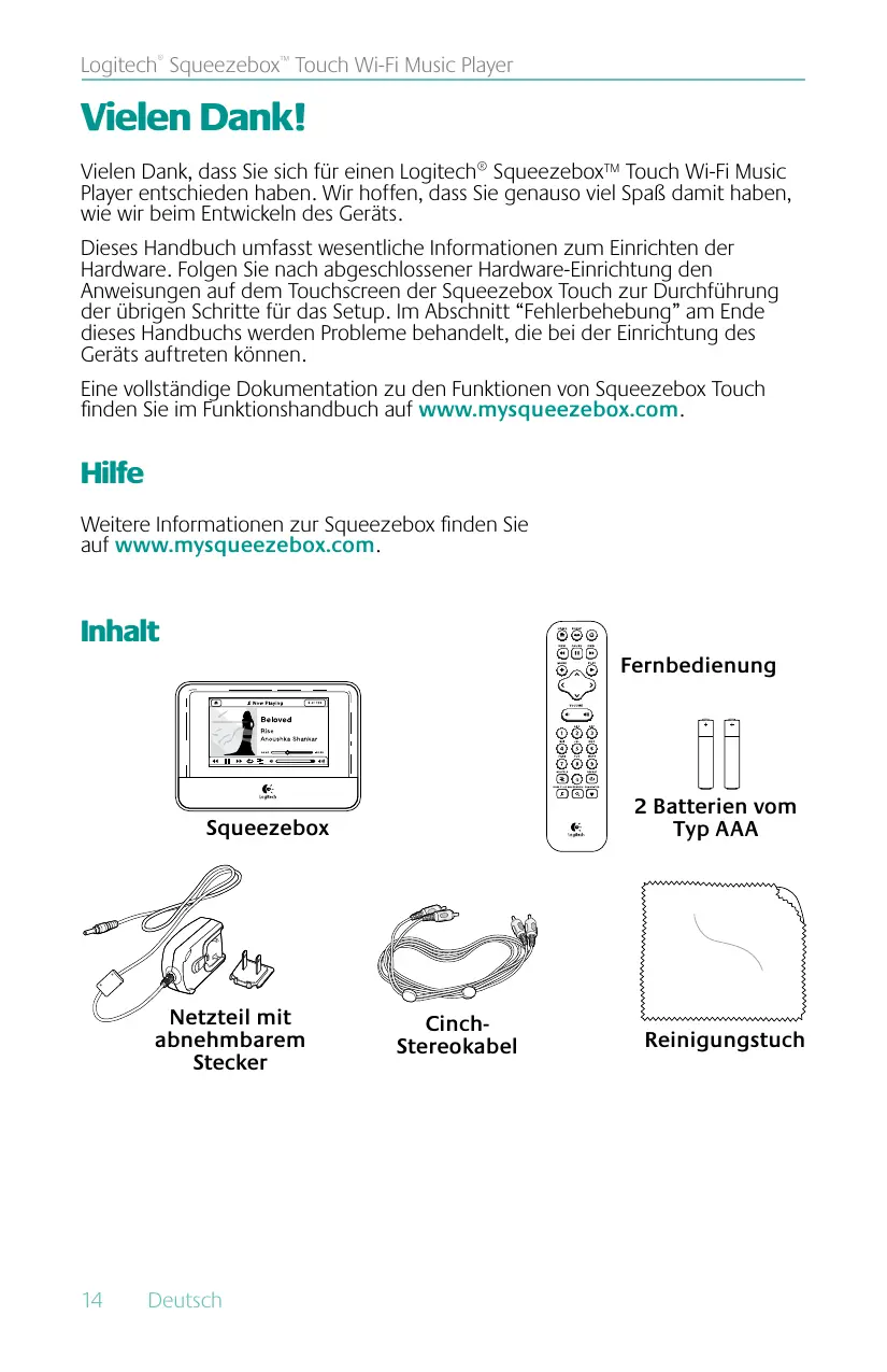 BEDIENUNGSANLEITUNG SQUEEZEBOX TOUCH LOGITECH