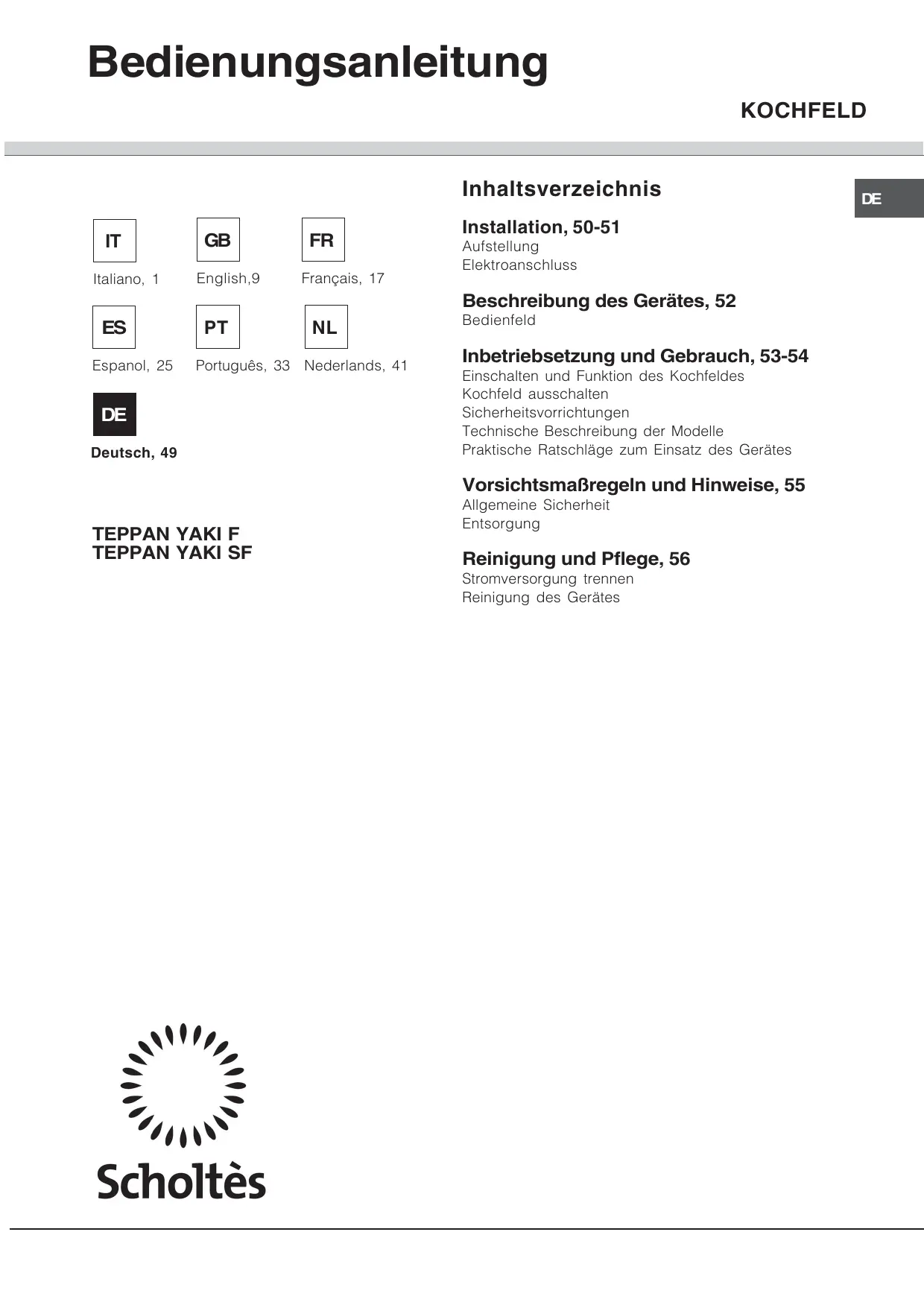 TEPPAN YAKI F - Kochfeld SCHOLTES - Kostenlose Bedienungsanleitung