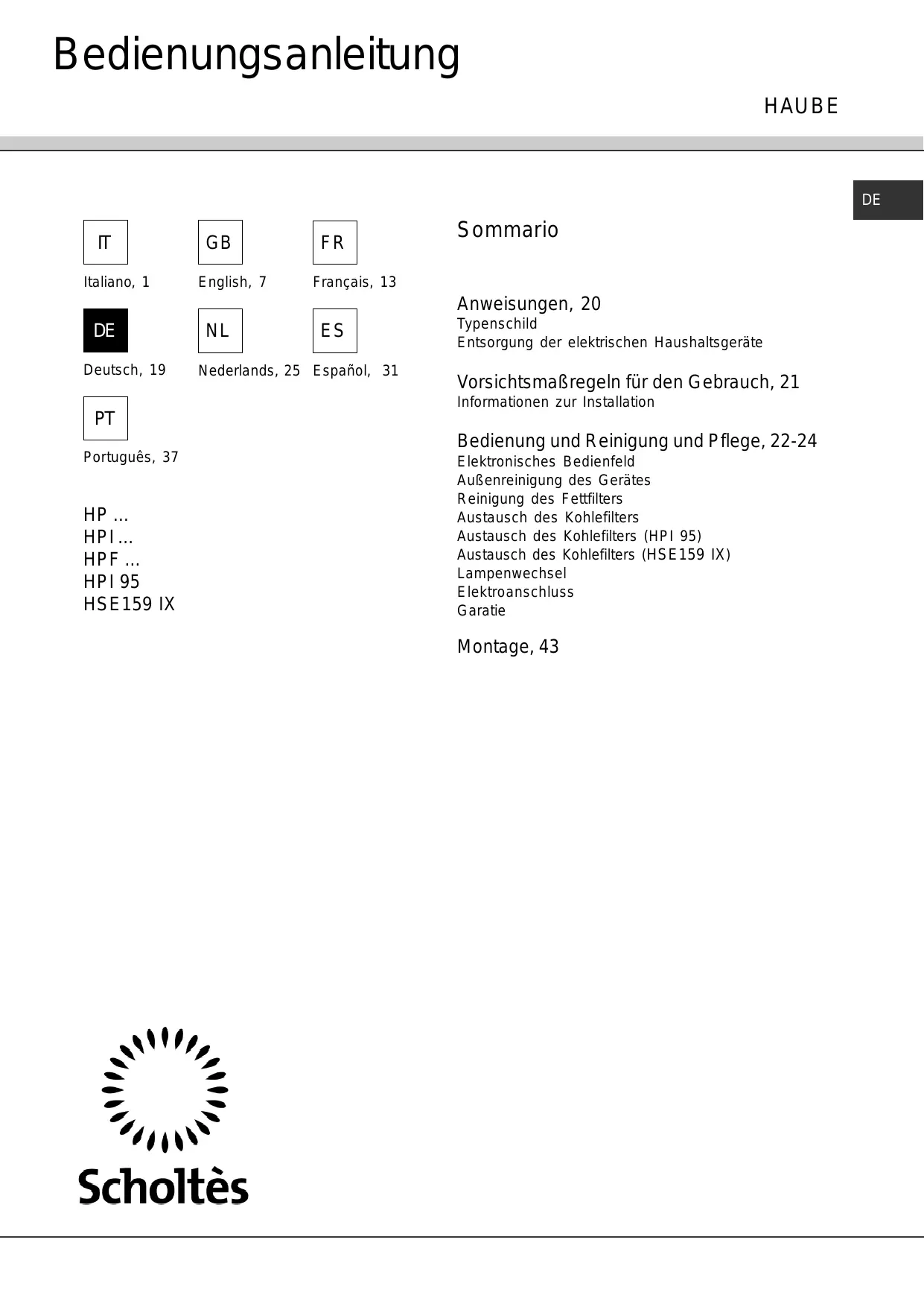 Finden Sie kostenlos die Bedienungsanleitung des Geräts HPI 90 SCHOLTES als PDF.