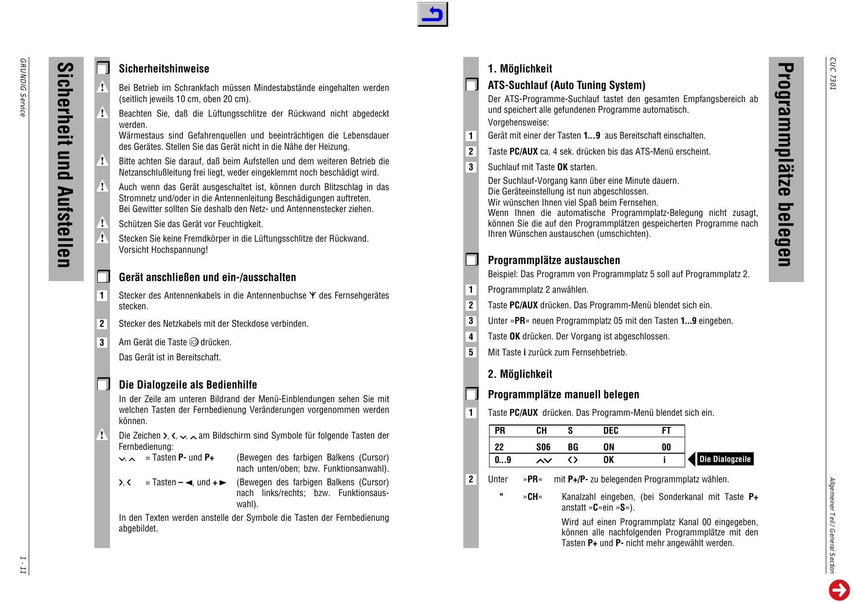 CUC 7301 - Fernsehen GRUNDIG - Kostenlose Bedienungsanleitung