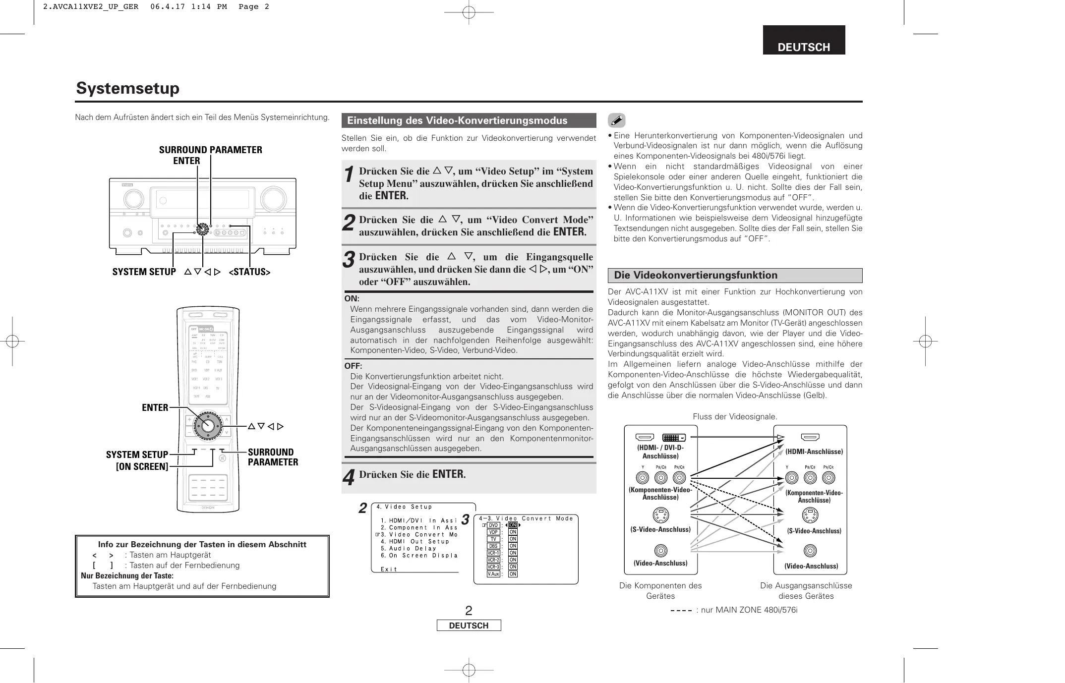 Video-Konvertierungsmodus-Einstellungen des MAIN ZONE…3, 4