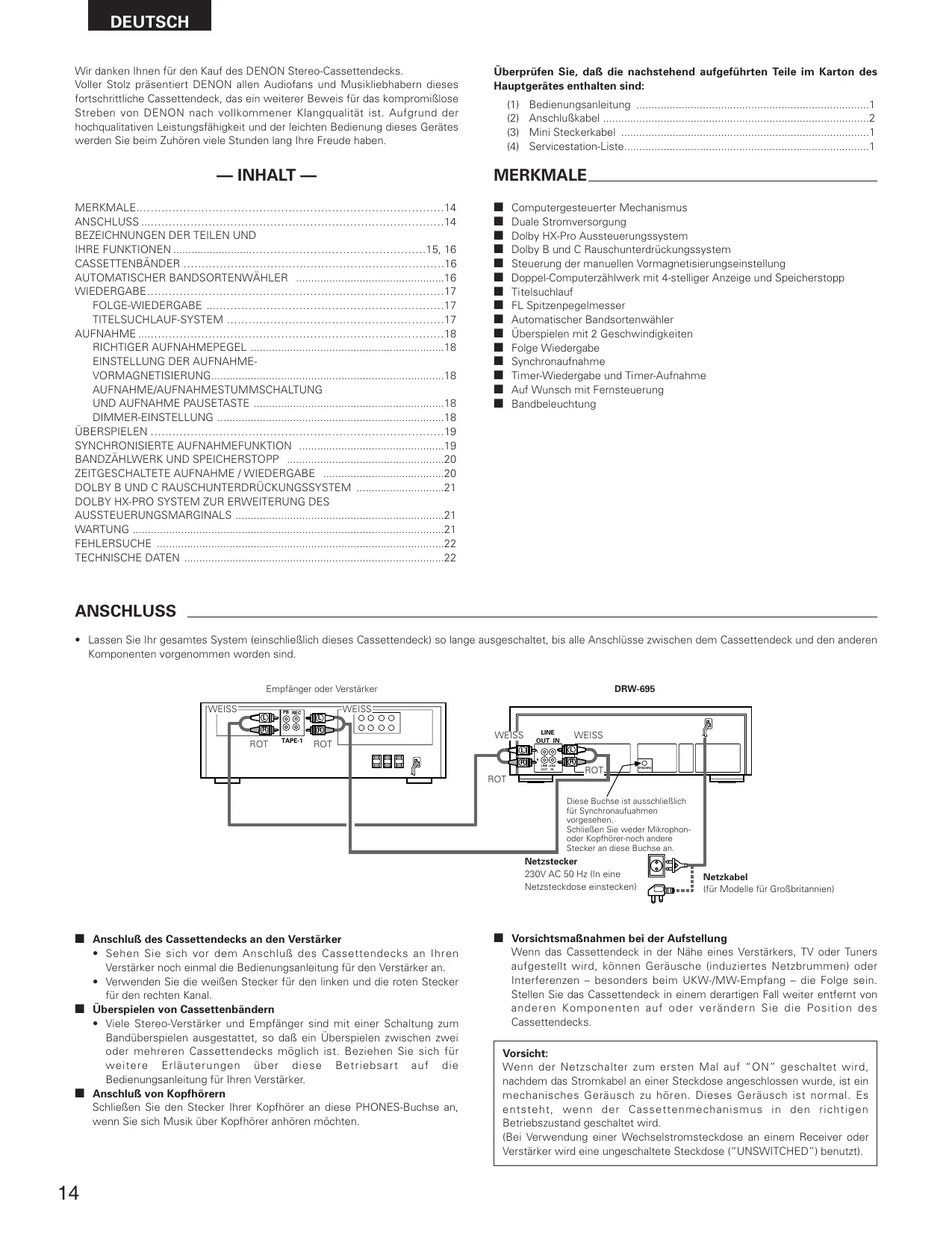 Finden Sie kostenlos die Bedienungsanleitung des Geräts DRW-695 DENON als PDF.