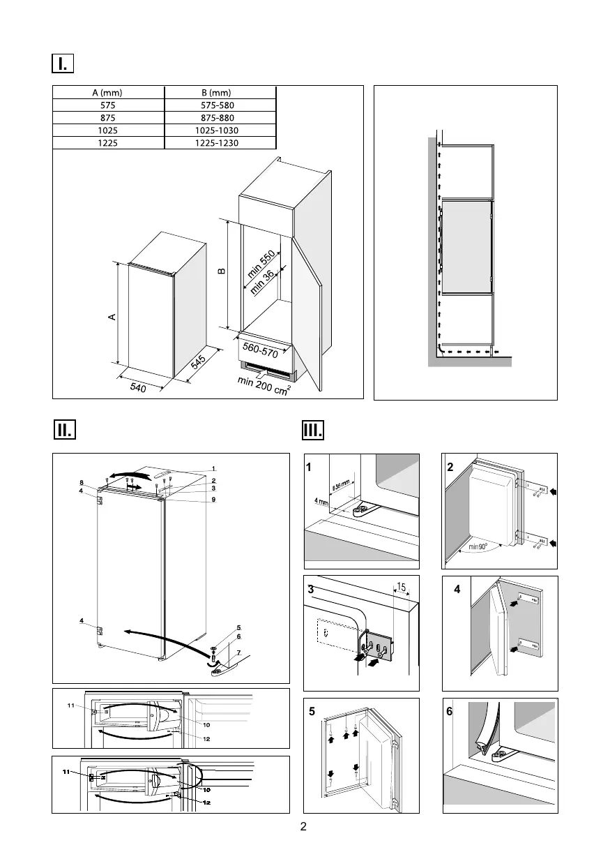 PyKOBOACTBO NO MOHTAXKY IHCTPyKUiA AñnA MOHTYBAHHA A (mm) B (mm) 575 575-580 875 875-880 1025 1025-1030 1225 1225-1230