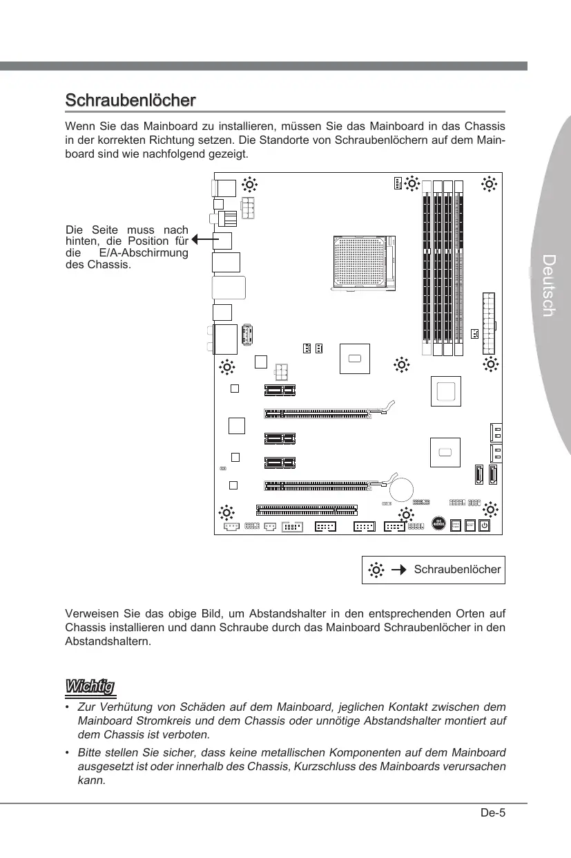 Wenn Sie das Mainboard zu installieren, müssen Sie das Mainboard in das Chassis in der korrekten Richtung setzen. Die Standorte von Schraubenlochern auf dem Mainboard sind wie nachfolgend gezeigt.
