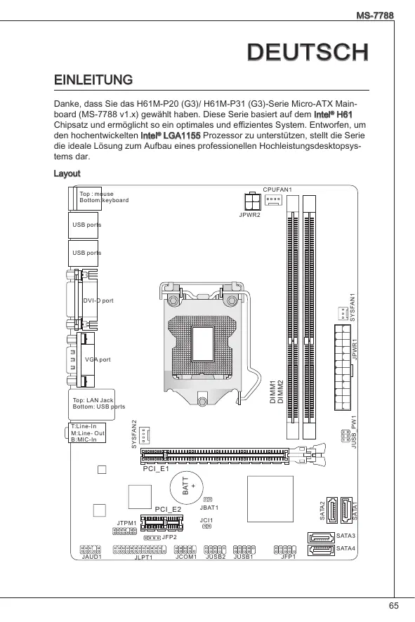 BEDIENUNGSANLEITUNG H61M-P20 MSI