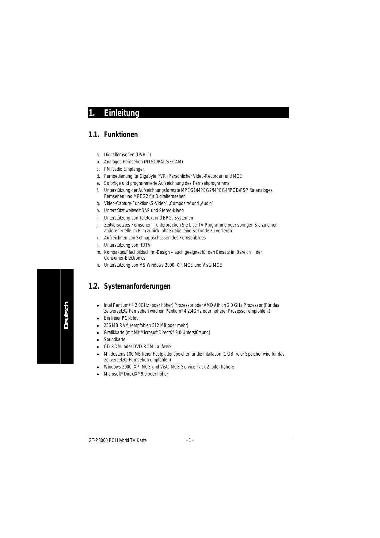 BEDIENUNGSANLEITUNG GT-P8000 GIGABYTE