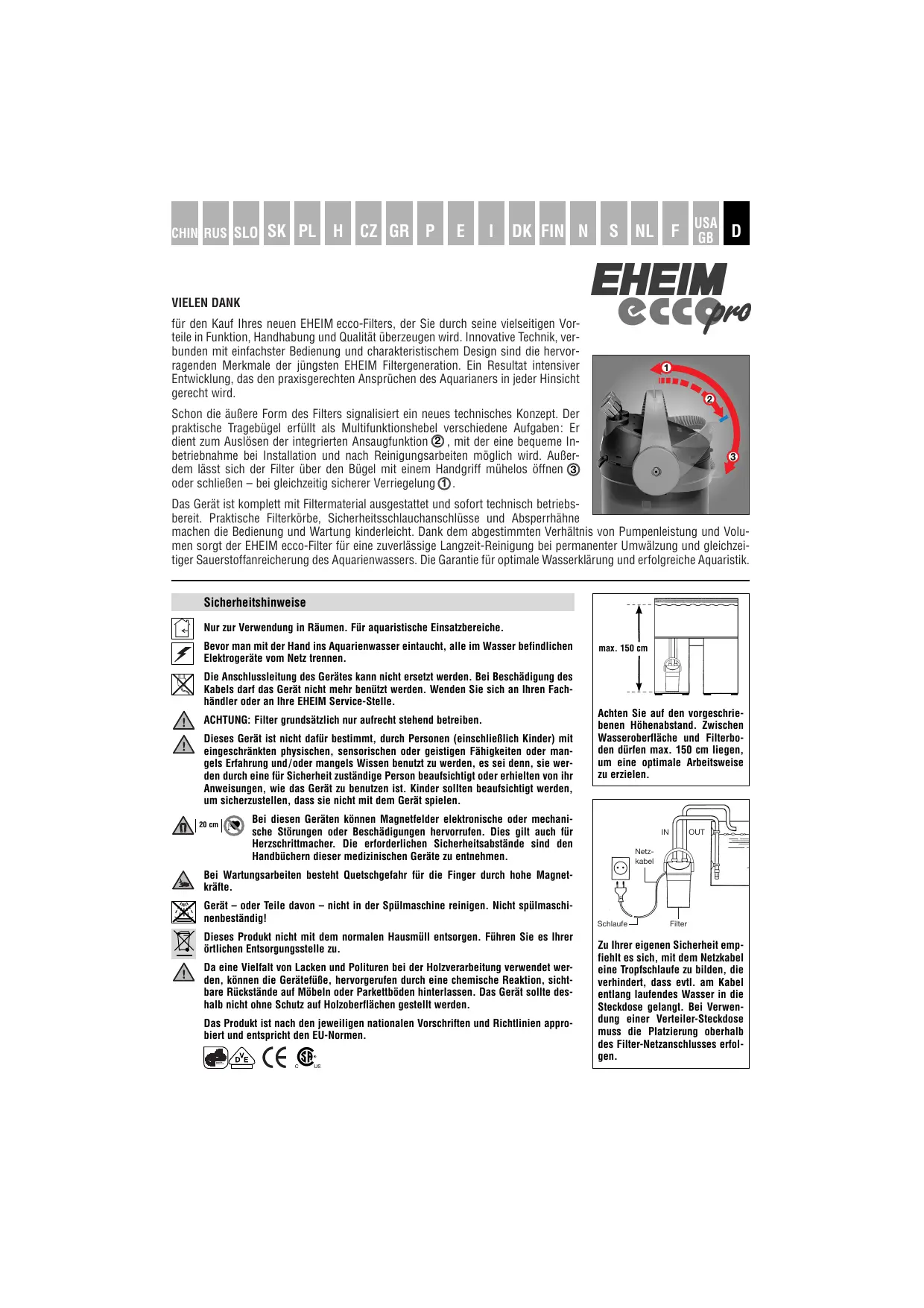 Finden Sie kostenlos die Bedienungsanleitung des Geräts ECCO PRO 2036 EHEIM als PDF.