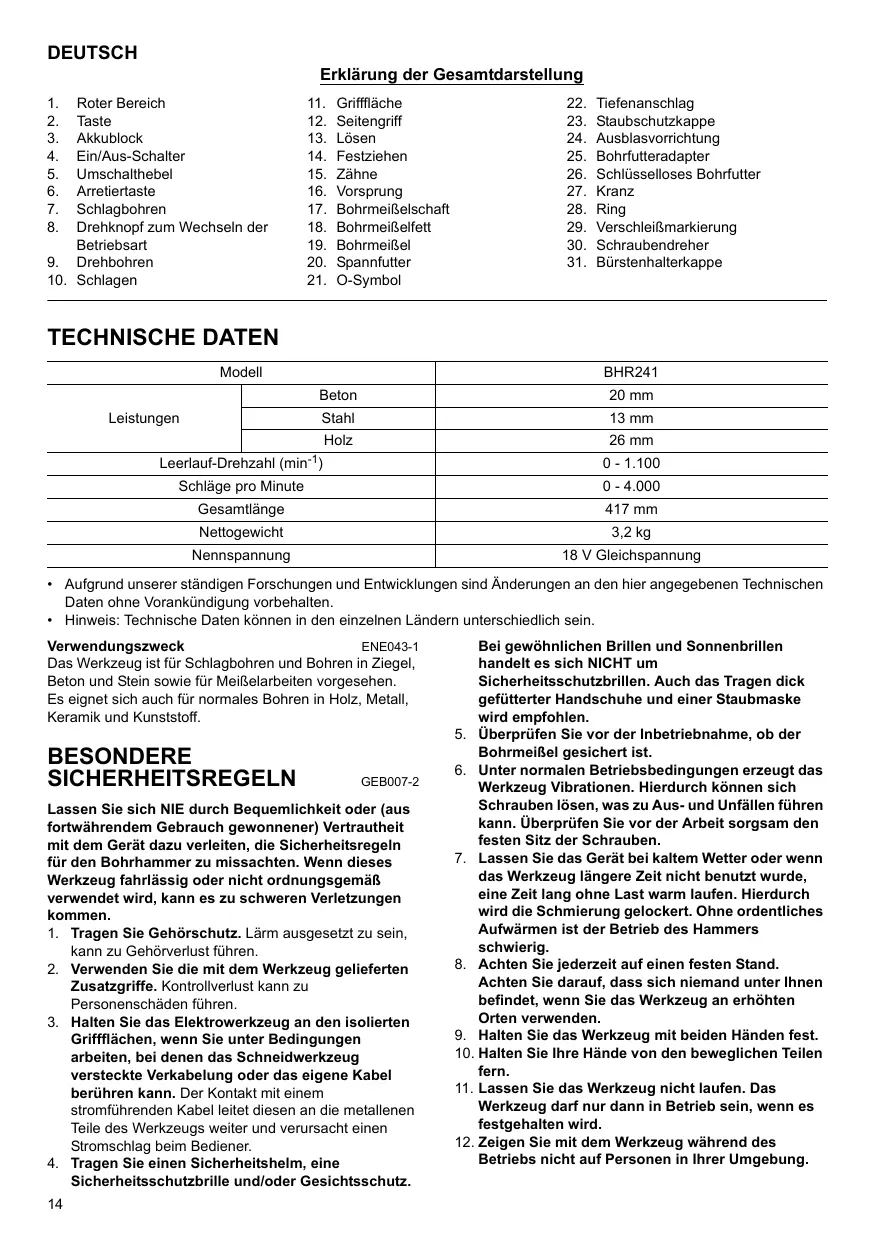 BEDIENUNGSANLEITUNG BHR241 MAKITA
