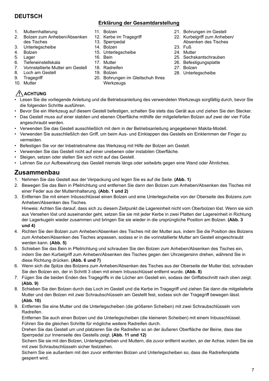 +_ Verwenden Sie das Gestell ausschlieflich mit dem in der Betriebsanleitung angegebenen Makita-Modell