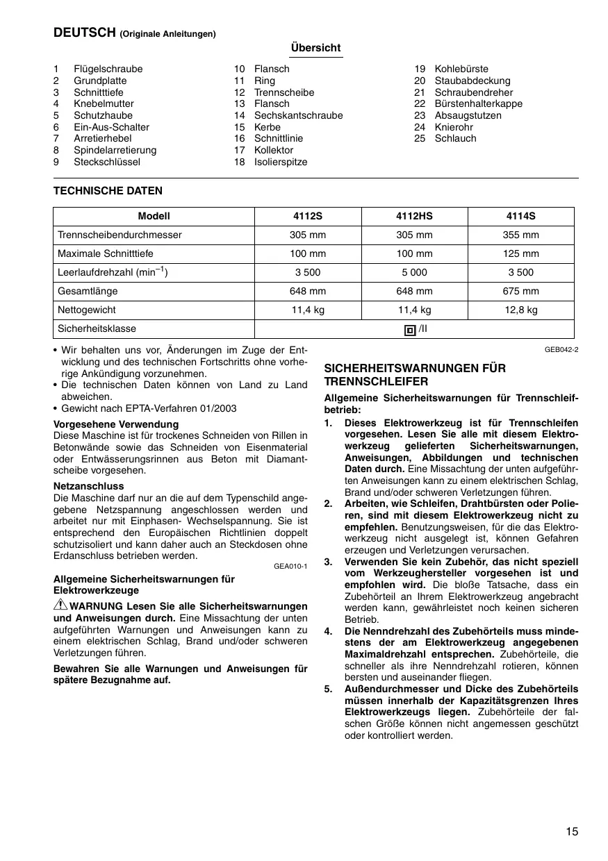 BEDIENUNGSANLEITUNG 4112S MAKITA