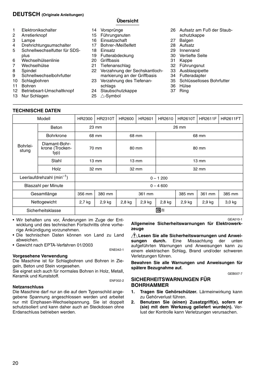 Laden Sie die Anleitung für Ihr Bohrhammer kostenlos im PDF-Format! Finden Sie Ihr Handbuch HR2610T - MAKITA und nehmen Sie Ihr elektronisches Gerät wieder in die Hand. Auf dieser Seite sind alle Dokumente veröffentlicht, die für die Verwendung Ihres Geräts notwendig sind. HR2610T von der Marke MAKITA.