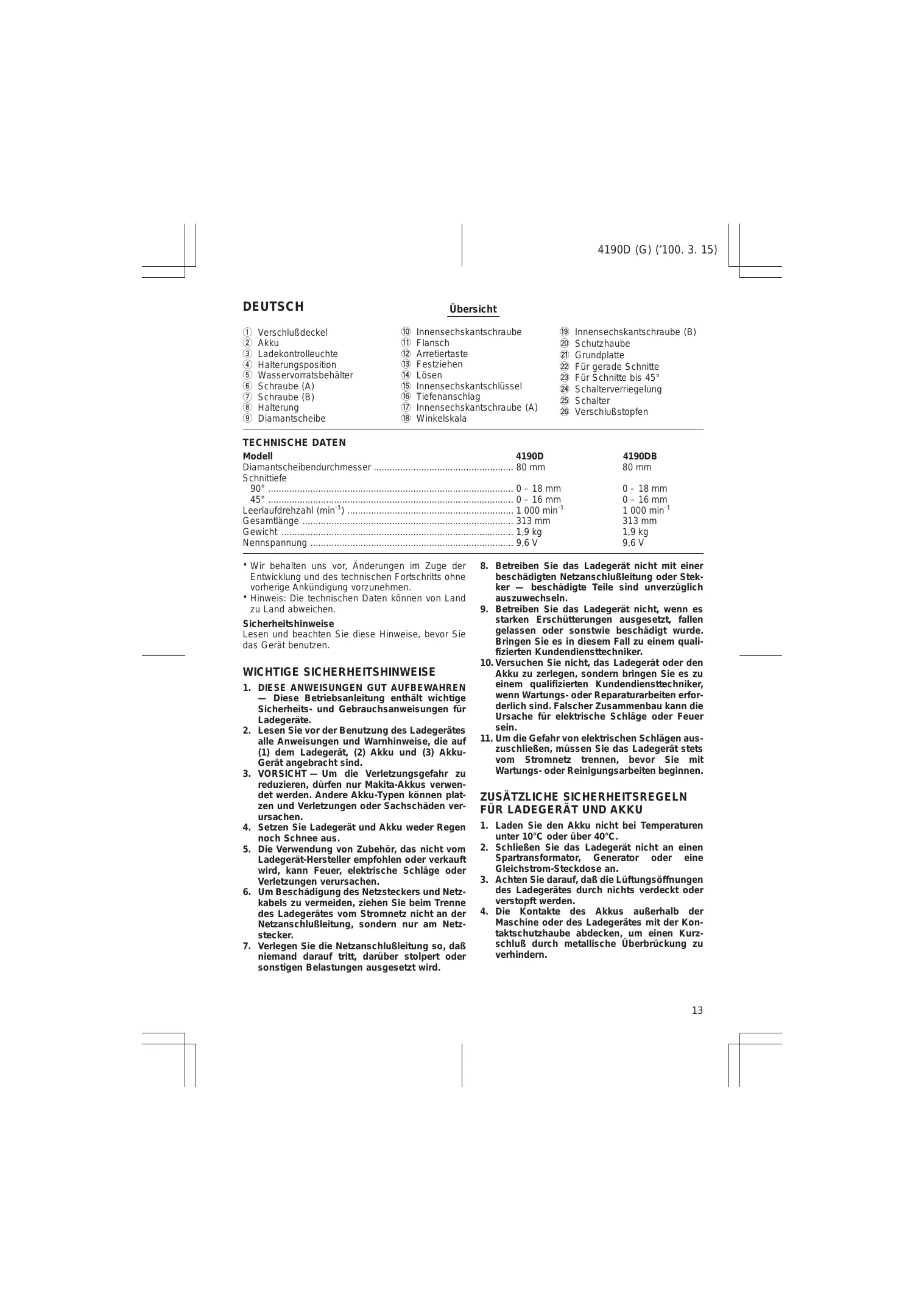 BEDIENUNGSANLEITUNG 4190D MAKITA