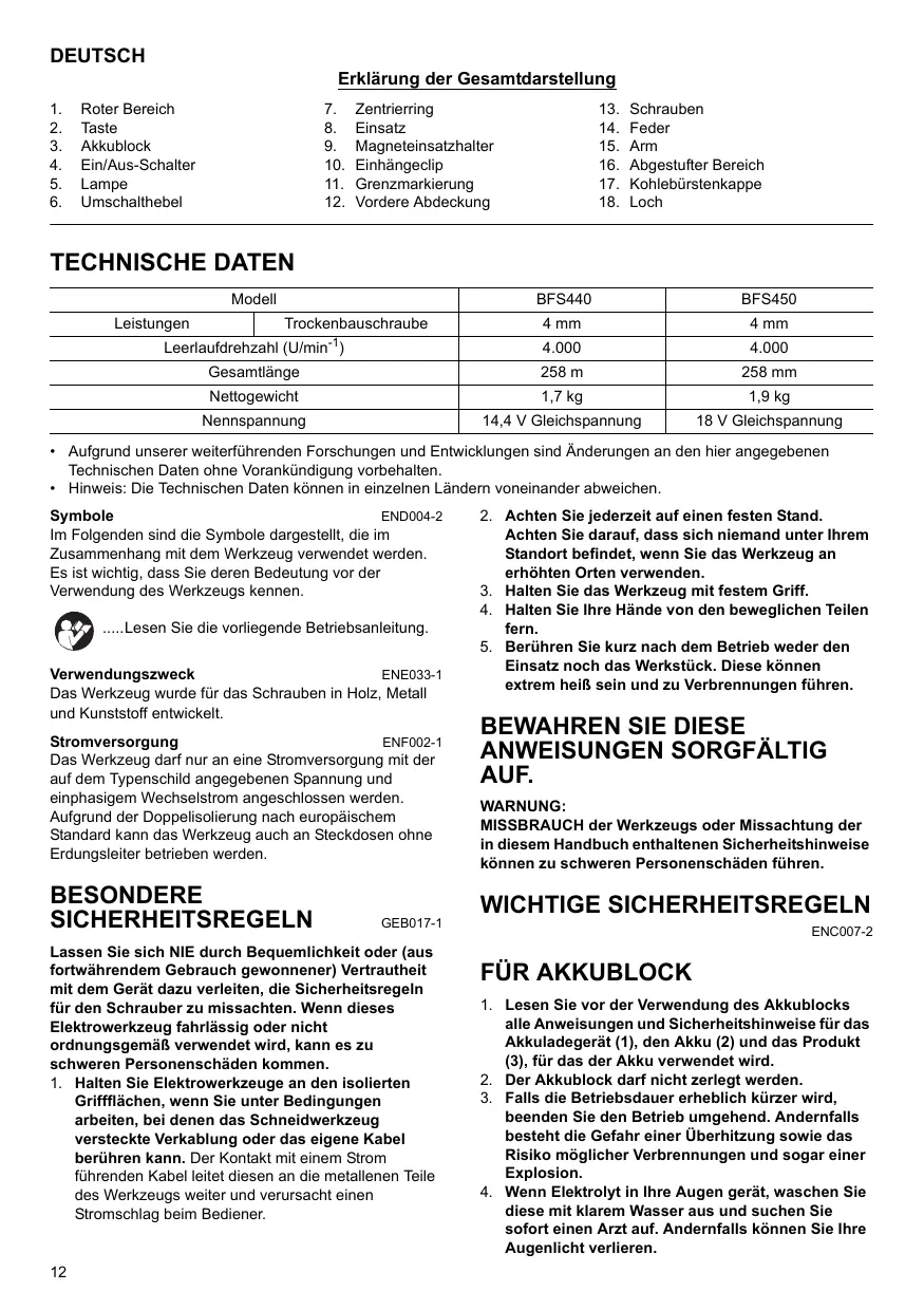 BEDIENUNGSANLEITUNG BFS450 MAKITA