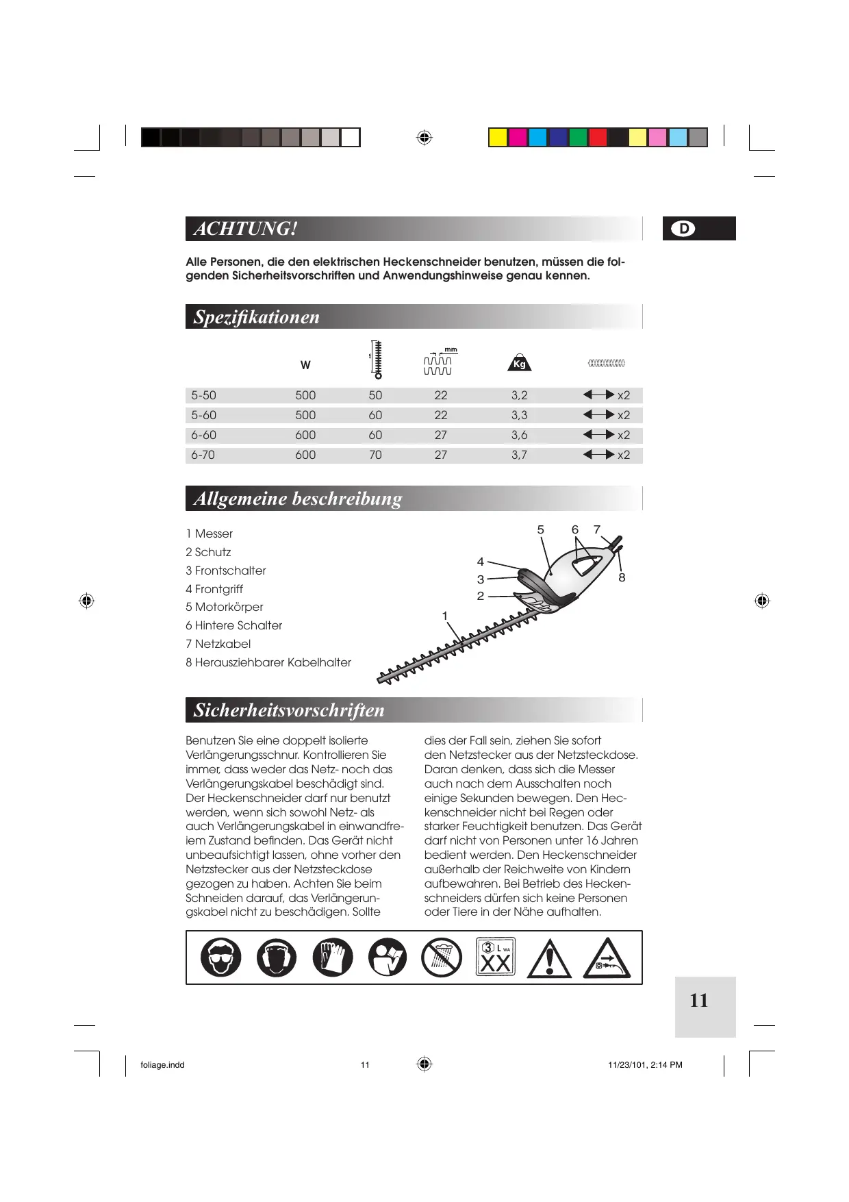Alle Personen, die den elektrischen Heckenschneider benutzen, müssen die folgenden Sicherheitsvorschriften und Anwendungshinweise bereits kennen.